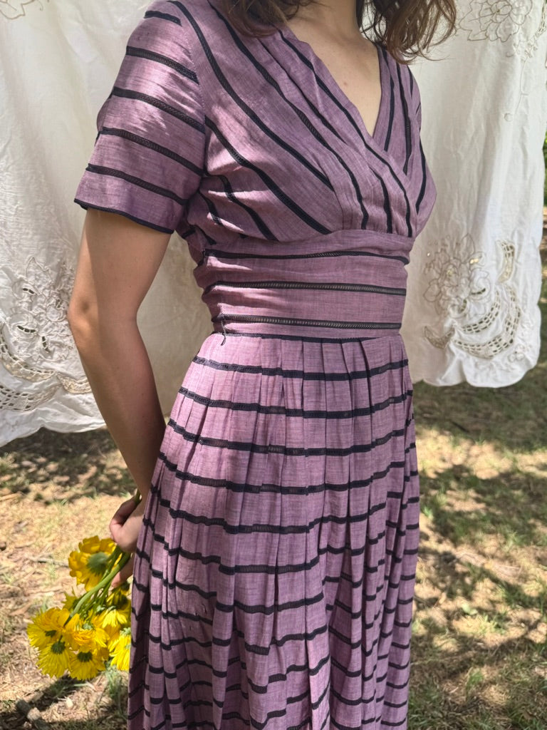 90s raw silk pearl trim dress set