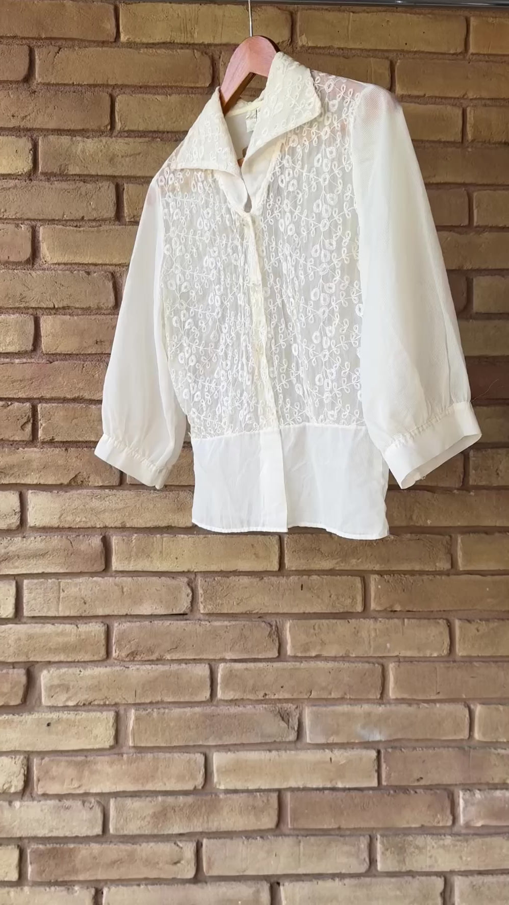 60s sheer nylon embroidered blouse with clear buttons